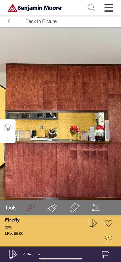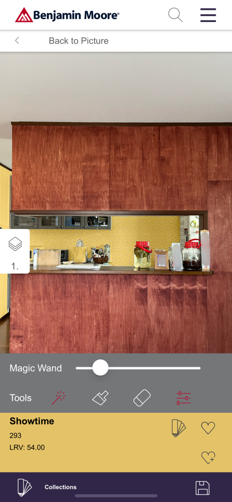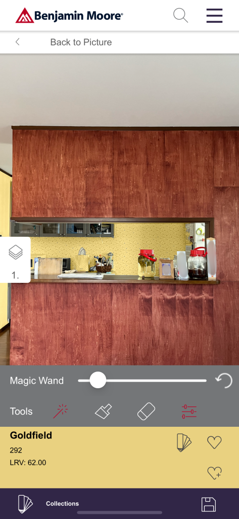 その画像の壁をベンジャミンムーアの商品のカラーに変換できます。