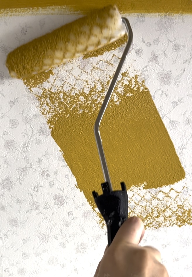 前回の漆喰塗りで、壁紙を剥がして大変だったので、今回は壁紙の上から塗っちゃいたいと思い、ペンキ塗装をすることに!